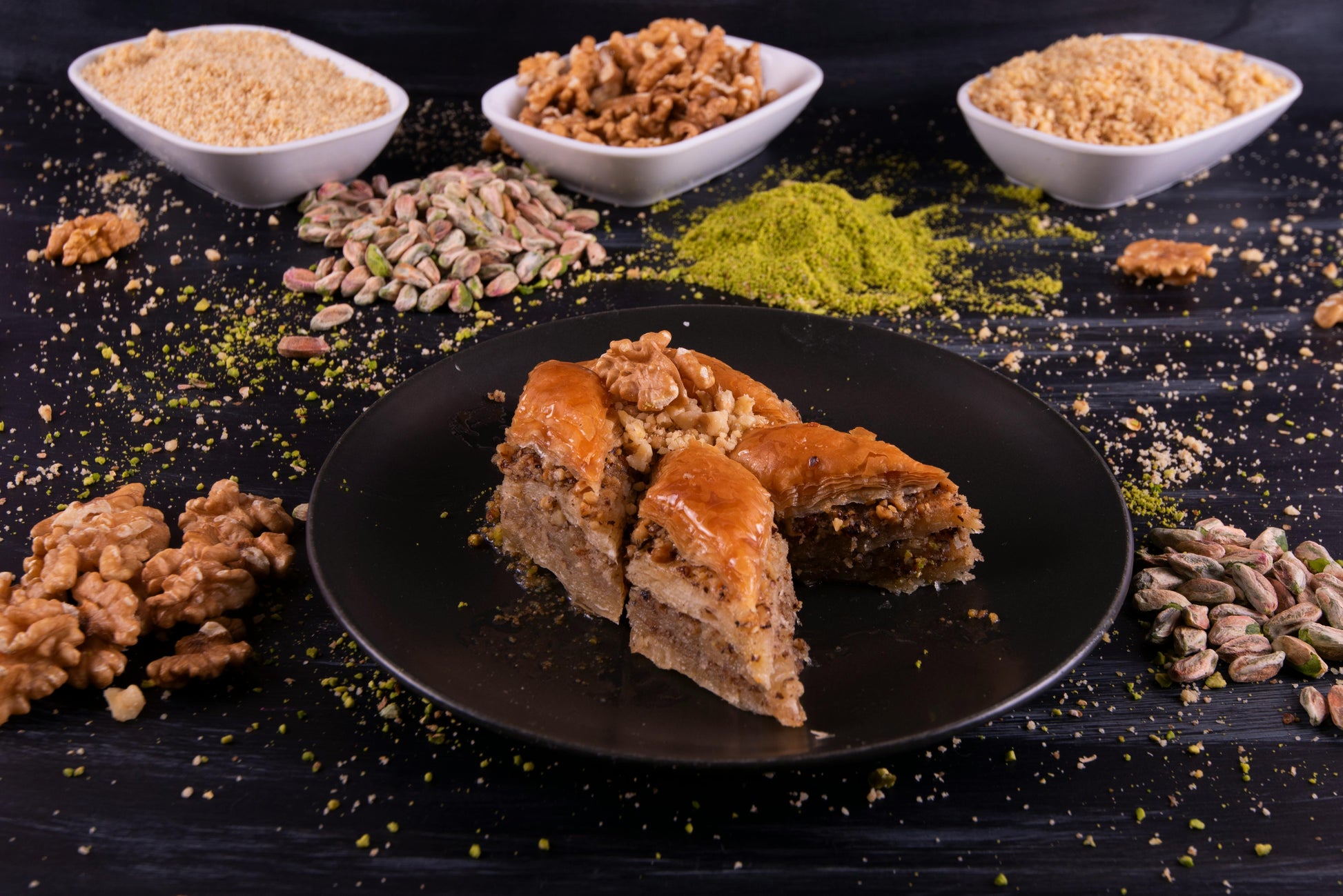 Un respiro y despiertas en Estambul. La dulzura de la miel acaricia el aire, mientras el hojaldre crujiente y el pistacho tostado se entrelazan con especias exóticas.